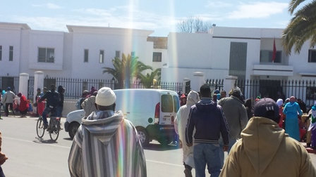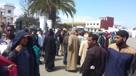 وضرب حصار وطوق أمني عليهم في الطريق من طرف قوات الأمن، التي رافقتهم على طول الطريق في اتجاه مقر العمالة .وكانت التشكيلات الامنية مكونة من الدخل السريع ورجال الأمن والقوات المساعدة والاسعاف.