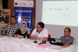 المائدة عرفت القاء ارضية للندوة القاها عبد المالك اصريح ومداخلة لمجوعة من الشباب المتطوعين نموذح RBC وعرضت تجربة تدخلها في جهة طنجة تطوان الحسيمة في اطار مشروع الشباب رافعة للتنمية الدامجة بالمغرب الممول من الاتحاد الاوربي بحضور المنسق الجهوي للمشروع محمد الصبان وسيمون زناتا خبير ومستشار مشروع هيئات العمل الاجتماعي بالاضافة الى عرض تجارب الشباب في العمل الاجتماعي و عرض جول تجربة جمعية الحمامة البيضاء في مجال الاعاقة القاه احمد العيدوني حول المجتمع المدني وافاق المستقبل للتدخل في موضوع الاعاقة تلتها مناقشة واختتمت الندوة بعرض توصيات الندوة القاها عبد المالك اصريح.