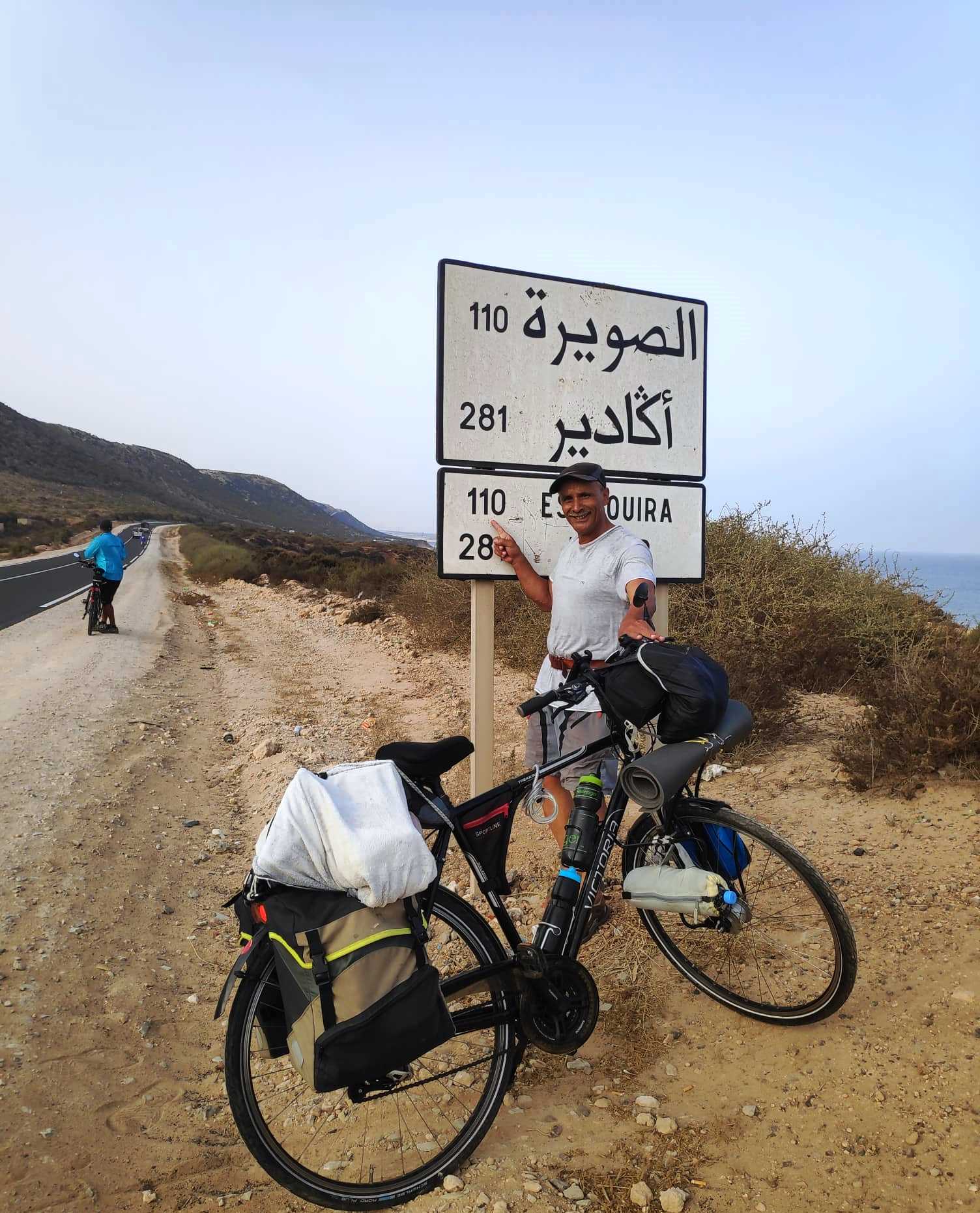 المرحلة السادسة من رحلة التحدي الايكولوجية لهواة الدراجة الهوائية التي يقوم بها الدراج المغربي مرحلة تضاريس مسارها مشجعة و مفاجئة ربطت بين مدينتي أسفي و الصويرة مرورا بالصويرية القديمة مشجعة لكون الطريق البحرية واسعة وجيدة تشجع على تحريك مدورة الدراجة الهوائية بها مناظر تجعلك توقف “سيارتك ذات عجلتين” = الدراجة الهوائية لأخذ لقطات تذكارية عند الخروج من مدينة السمك أسفي و قربك من منطقة صناعية عليك بتدوير الدواسات بسرعة فائقة حتى تجتاز معامل و مشكل الغازات المنبعثة ، بعد الخروج من الصويرية القديمة نفس الملاحظات مشكل التشجير الطرقي يضاف إليه مشكل قلة الماء على جنبات الطريق و دكاكين لاقتناء حاجيات هي قليلة إلى منعدمة مقاهي منعدمة الا في مدخل قريتين صغيرتين ، التشوير لابأس به ، الطريق بها شواطئ تنسيك ما هو مشكل : شاطئ جرف بلعربي يريحك متاعب الطريق و يهدئ الاعصاب ، متعة الرؤية لمناظر خلابة و نشاط رياضي عالي هذه الاستفاذة ستضيع عند قربك دخول مدينة الصويرة على بعد 31 كلم تجد أمامك عقبة بزاوية تفوق 70 درجة و مسارها يفوق 3 كلمترات عليك بمجهود جبار لصعودها…