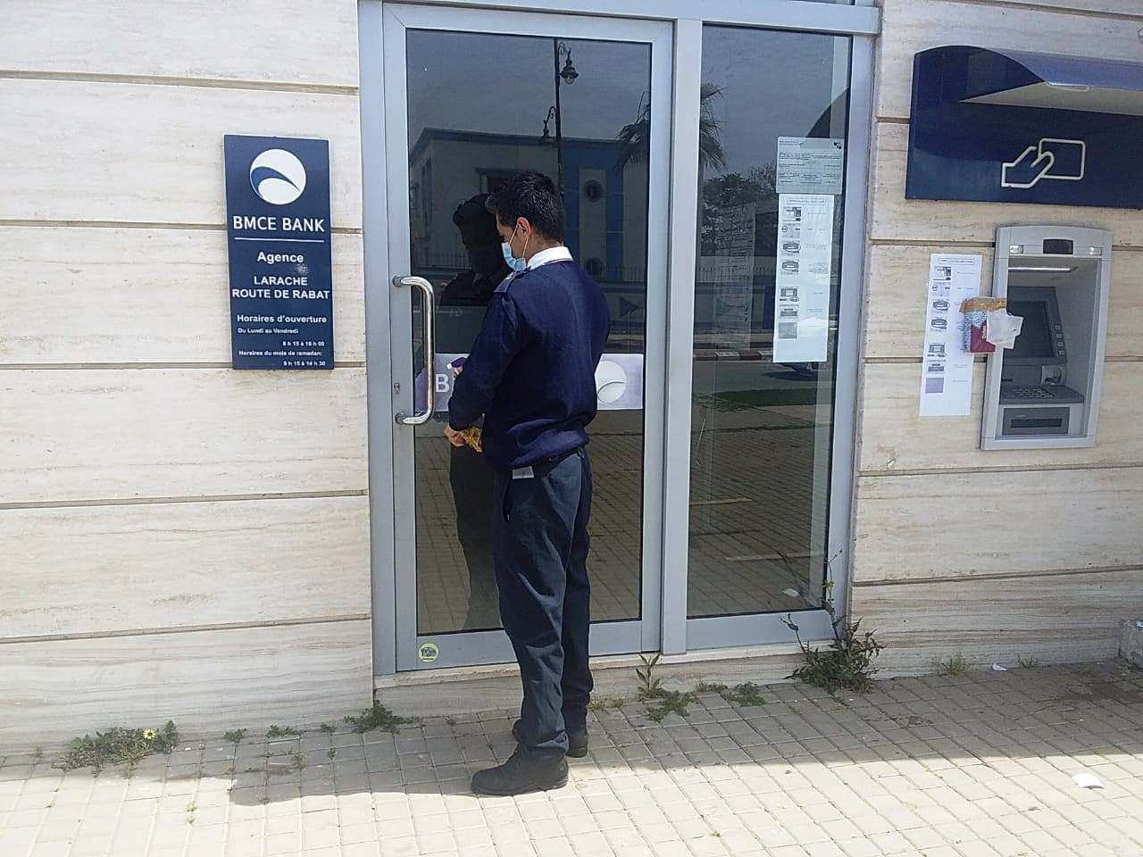 اتخذ بنك افريقيا BMCE بمدينة العرائش إجراءات وتدابير وقائية مهمة تماشيا مع توصيات وزارة الصحة للحد من انتشار فيروس كورونا المستجد، لحماية صحة الموظفين و المواطنين على حد سواء داخل الوكالات البنكية أو أمام الشبابيك الإلكترونية وذلك من خلال توفير معقمات و مناديل ورقية و علامات تشويرية على الأرض لحث المواطنين على احترام مسافة الأمان الصحية لتجنب التزاحم بين المواطنين، كما يحرص حاس الامن بالوكالة البنكية على تعقيم الشباك والصراف الاتوماتيكي على راس كل ساعة بالاضافة الى باب الوكالة وتدابير احترازية لاستقبال الزبناء بباب الوكالة .