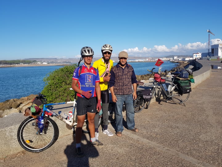 استغل هواة الدراجات الهوائية جائحة كورونا للاستمتاع بممارسة هوايتهم المفضلة واكتشاف مناطق مغربية ، الصورة التذكارية تجمع الدراج عبد الفتاح بلبركة مع الشابين “عبد و مهدي” أبطال دراجين قادمين من مدينة الداخلة ومدينة سيدي افني في جولات استكشافية لمناطق مغربية ،يشجعون الشباب على ثقافة ركوب الدراجة الهوائية ويحملون رسالة لخلق المتعة الرياضية الهادفة من لاشئ ،في المسار الى حدود مدينة العرائش قطعوا اكثر من 5000 كلم ولا زالت الجولة مستمرة الى مدينة الصويرة عبر الدار البيضاء مراكش … شعارهم : “اذا حضرت الرغبة الناتجة عن احساس العراقيل كلها عرض الحائط “..الابطال