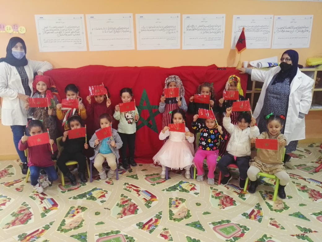 خلدت مؤطرات التعليم الاولي العمومي لمدرسة علال بن عبد الله الابتدائية بالقصر الكبير ومدرسة للافاطمة الاندلسية للبنات اليوم الجمعة 5 نونبر الجاري تحت اشراف جمعية الصفاء للتنمية الاجتماعية والثقافية والبيئة الذكرى 45للمسيرة الخضراء السلمية التي كانت ولازالت راسخة بالتاريخ الوطني جسد الأطفال والطفلات الملحمة حاملين الاعلام الوطنية ورددوا الاناشيد الوطنية التي تعبر عن تاريخ المسيرة الخضراء وعن ذكرى غالية على كل مغربي ومغربية ربط الماضي بالحاضر وزرع قيم الاخلاق الوطنية الصادقة في براعم وزهرات هاته الاقسام المنبثقة من المدرسة الوطنية العمومية الرائدة