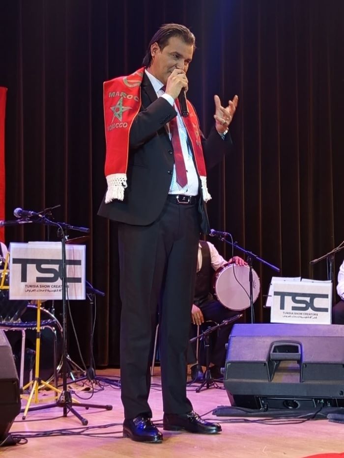 تلاه الفنان أمين العاصمي الذي دخل بصوته كما يدخل المطر له رائحة المدن المغربية ونبرة الدروب القديمة فغنى يا بلادي عيشي ثم الأغنية الحليمية موعود فذابت الجدران فى لحنه وصارت القاعة أوسع من حدود المكان وأسخى من فتحة قلب.