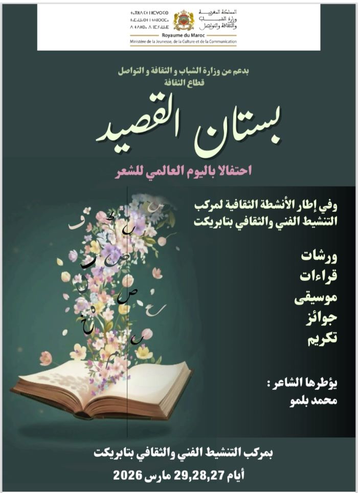 لأن الشعر هو الأداة اللغوية التي تمكن أي إنسان موهوب من التعبير عن ذاته وإنسانيته وأحلامه، ولان اليوم العالمي للشعر، الذي علينا أن نفتخر كمغاربة بدور مؤسسة بيت الشعر في المغرب ووزارة الثقافة المغربية في تكريسه عالميا من طرف اليونسكو، إلى جانب شعراء فلسطينيين كبار، فان تنظيم الدورة الأولى لتظاهرة “بستان القصيد” بالمعهد الوطني العالي للموسيقى والفن الكوريغرافي، من 30 أبريل إلى 02 ماي 2026، كإضافة نطمح أن تكون نوعية في تخليد هذا اليوم العالمي البهيج، بدعم من وزارة الشباب والثقافة والتواصل – قطاع الثقافة، وبتنسيق مع جمعية آباء وأمهات وأولياء تلاميذ وتلميذات ثانوية الفتح الإعدادية، أردنا لها أن تجمع في دورتها التجريبية هذه، بين الاحتفال باليوم العالمي للشعر، والانخراط في فعاليات “الرباط العاصمة العالمية للكتاب 2026″، وفق ما حددته منظمة اليونسكو، على إن يتضمن برنامجها لهذه الدورة ورشات نظرية وتطبيقية في كتابة الشعر لفائدة أكثر من 20 تلميذا وطالبا من الذين تستهويهم قراءة وكتابة الشعر، على امتداد يومين، مع تنظيم زيارة ميدانية للمشاركين لأروقة المعرض الدولي للكتاب، وبالخصوص رواق بيت الشعر للاطلاع على منشوراته الثرية التي يصدرها ويحتفي بها كل سنة، بدعم من الوزارة الوصية، لتختتم التظاهرة دورتها الأولى بسهرة ختامية تجمع بين رعاية المواهب المتميزة التي ستشارك في الورشات، من خلال قراءة بعض نصوصها، مع تسليم المشاركين جوائز رمزية تشجيعية تتضمن دواوين شعرية وشهادات تقديرية.