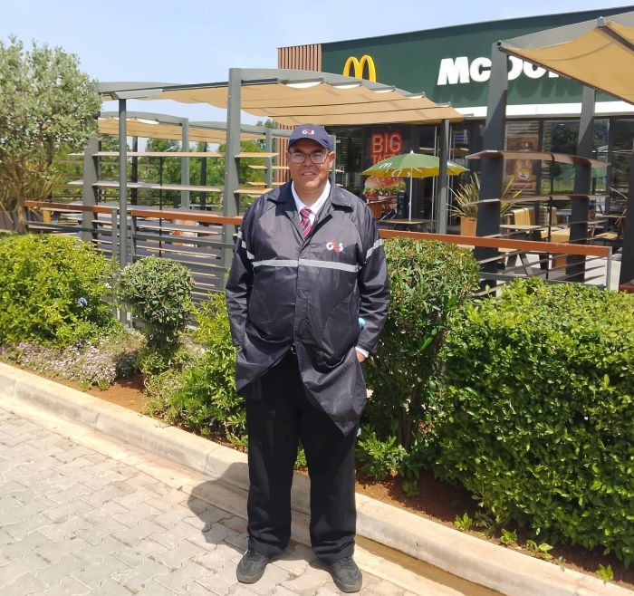 عيد شغل سعيد ومجيد وكل عيد والشغيلة المغربية بخير ومن مقر عملي أقدم لكم صورا معبرة لي ومن محطة الاستراحة العرائش أحيي كل من اشتغلت معه وعرفته وخاصة رئيسي في العمل الشاف سي المهدي والذي أكن له الحب الخالص والمحبة الخالصة وأقدره وأعزه ولا أنكر معاملته الجيدة لي ولا يمكنني أن أنكر صنيعه معي؛ وبهذه المناسبة أوجه التحية الطيبة ومن حشاشة قلبي ومن أعماق الروح والوجدان والسلام الحار لكل حراس شركة كروب 4 الذين سعدت بصداقتهم والعمل معهم وبينهم ونهلت من خبرتهم في العمل والحياة الشيء الكثير؛ وأوجه الشكر والامتنان لكل المشرفين والمسؤولين على مطعم ماكدونالد انطلاقا من سعادة المدير سي صبري ومرورا إلى كل أعوانه ومساعديه من الشباب العامل رجالا ونساء؛ ونهاية إلى عمال النظافة والبستاني الذي أجلّه وأحبه با البطيوي وأنوه بباقي المتدخلين في عمل المطعم ولا يمكن أنسى أبدا من عرفت من أناس هم خيرة الناس معدنهم الطيبة والوداعة والصدق في وكالة بيع تذاكر المسافرين والركاب خاصة سي رشيد الشناوي وصديق الدراسة محمد الأزعر.