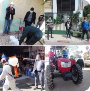 و قامت الفرق المتخصصة لهذا التدخل مع ارشادات مكتب حفظ الصحة بتعقيم وتطهير المرافق الجماعية .شملت المقاطعات وسيارات الاجرة والساحات والشوارع العمومية والدروب والازقة والاسواق .