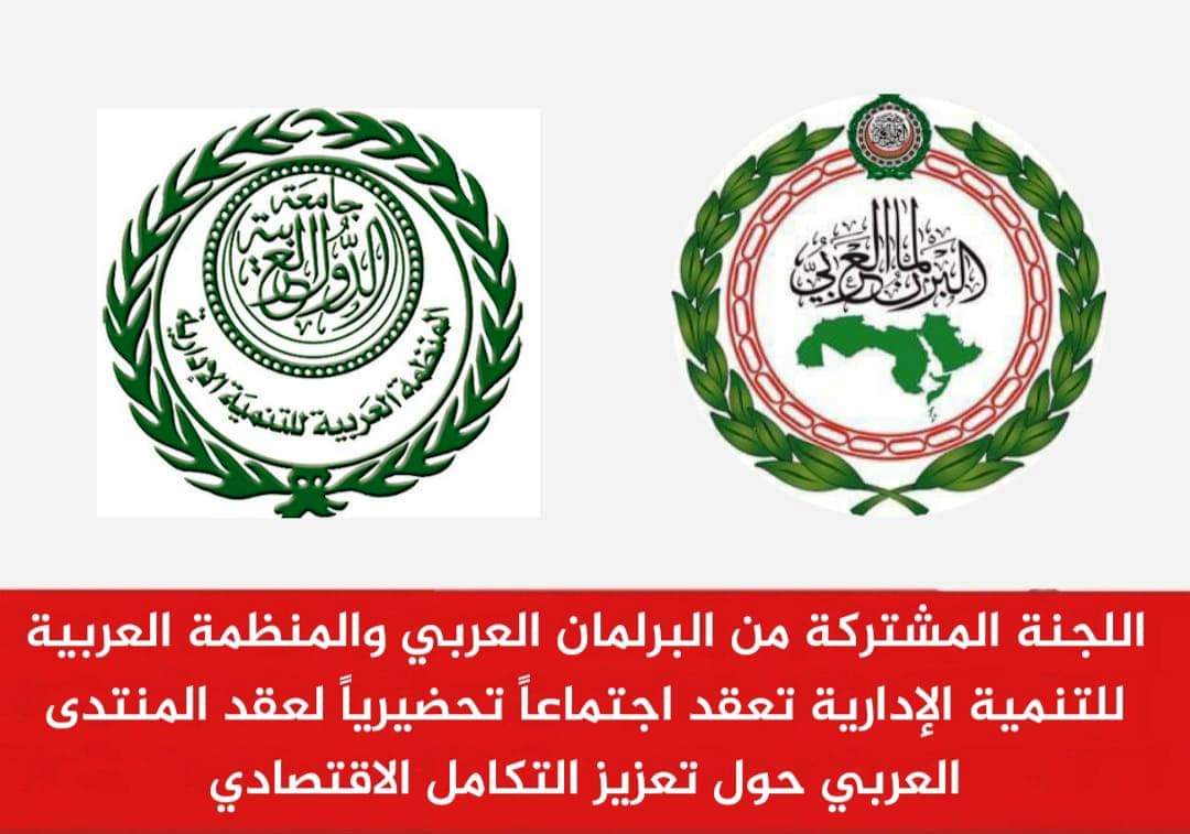 الجنة المشتركة من البرلمان العربي والمنظمة العربية للتنمية الإدارية تعقد اجتماعاً تحضيرياً لعقد المنتدى العربي حول تعزيز التكامل الاقتصادي